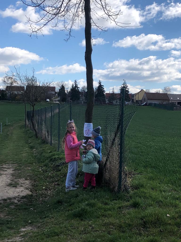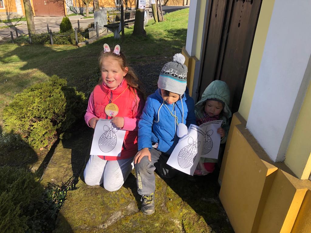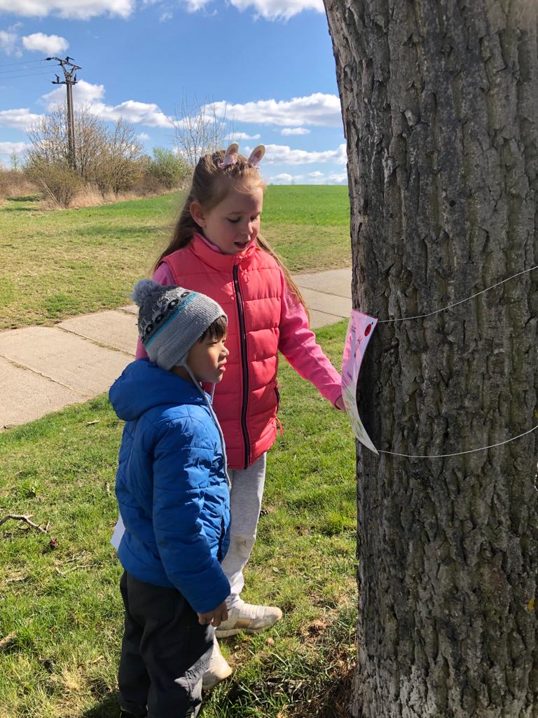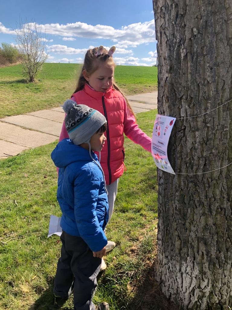 aneb jak dostat děti na procházku :-) Maminky ze spolku Baby z Hasky připravily pro nejmenší stezku kolem obce súkoly s velikonoční tematikou...